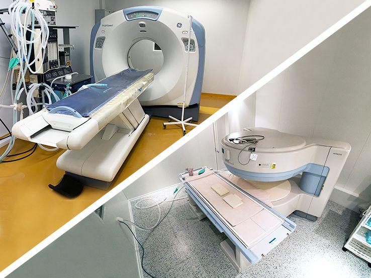 další technické vybavení:magnetická rezonance, CT, rehabilitační bazén, jednotka intenzivní péče i pro velké psy (klimatizovaný kyslíkový box), defibrilátor, laparoskop, oddělené hospitalizace psů a koček |